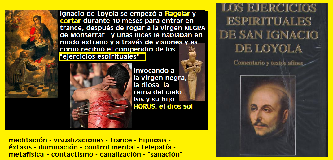 No se sabe cómo pero fué como Ignacio de Loyola se fué para Monserrat, la iglesia católica dice que a ponerse a los pies de la virgen María… sin embargo quienes han seguido la historia de la virgen NEGRA de Monserrat, la monereta, pues sabrán que esa no es la virgen María y que por siglos se ha llevado secretamente el culto a la muerte en catacumbas, en cuevas, en túneles y minas, lugares más cercanos al inframundo que al cielo.