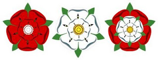 | la rosa roja de la dinastía Tudor y la blanca de la dinastía de York |
