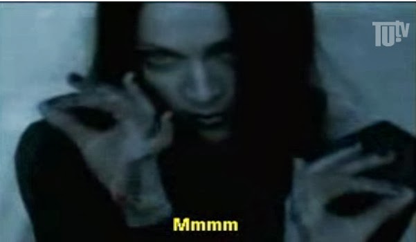 Vemos luego en el video una serie de imágenes donde ella parece ser asediada por ese león (dios), luego una imagen me llama la atención y es que el crucifijo ya no le cuelga en el pecho y que el colgante de perlas, el rosario mariano, se ha vuelto más largo.