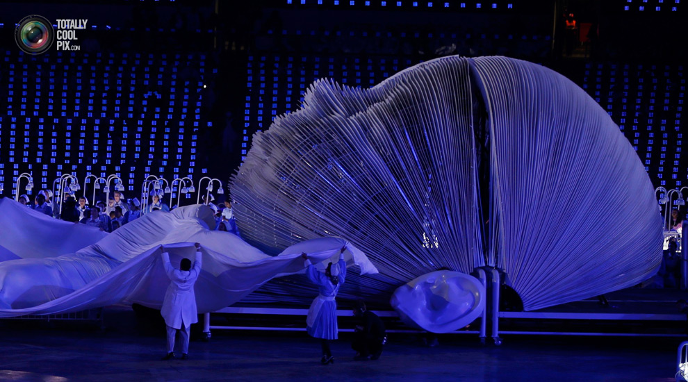 | simbología del futuro bebé real durante la inauguración de los juegos olímpicos de Londres |