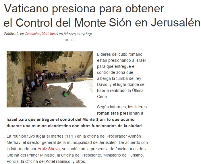 Existe un clima muy tenso alrededor de los derecho de judíos de rezar y visitar el Monte del Templo. El 29 de octubre de 2014, hubo un atentado contra la vida del activista israelí Yehuda Glick que lucha por el derecho de judíos de rezar en el Monte del Templo… esto mientras el Vaticano ha venido ejerciendo presión para hacerse al control del monte porque el Vaticano será descentralizado y el Monte del Templo o Explanada de las Mezquitas, será el nuevo lugar donde el papado preparará al mundo para la llegada del falso Cristo.