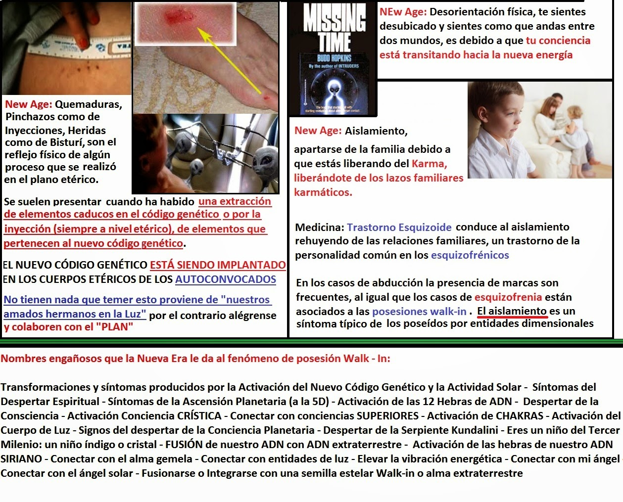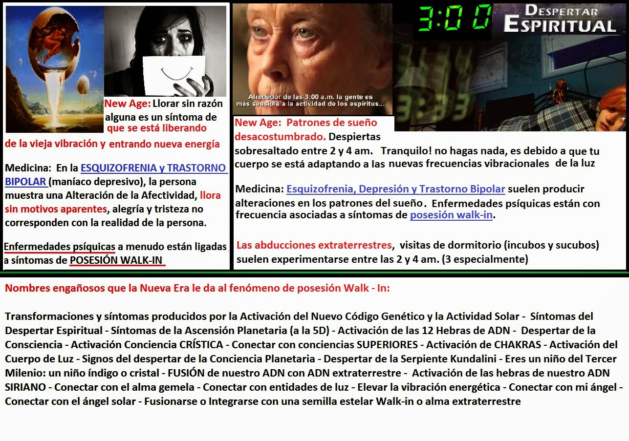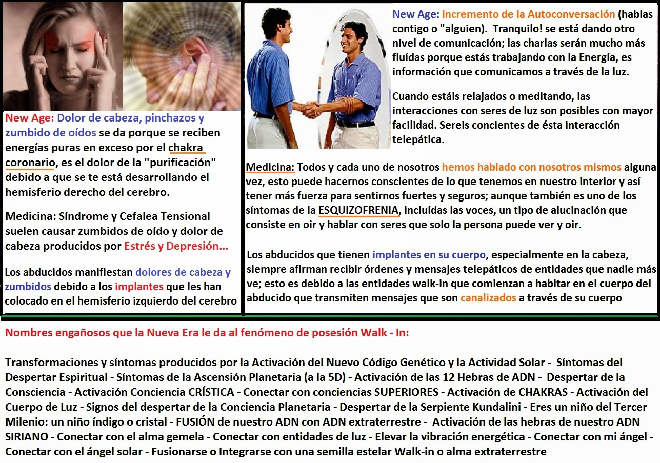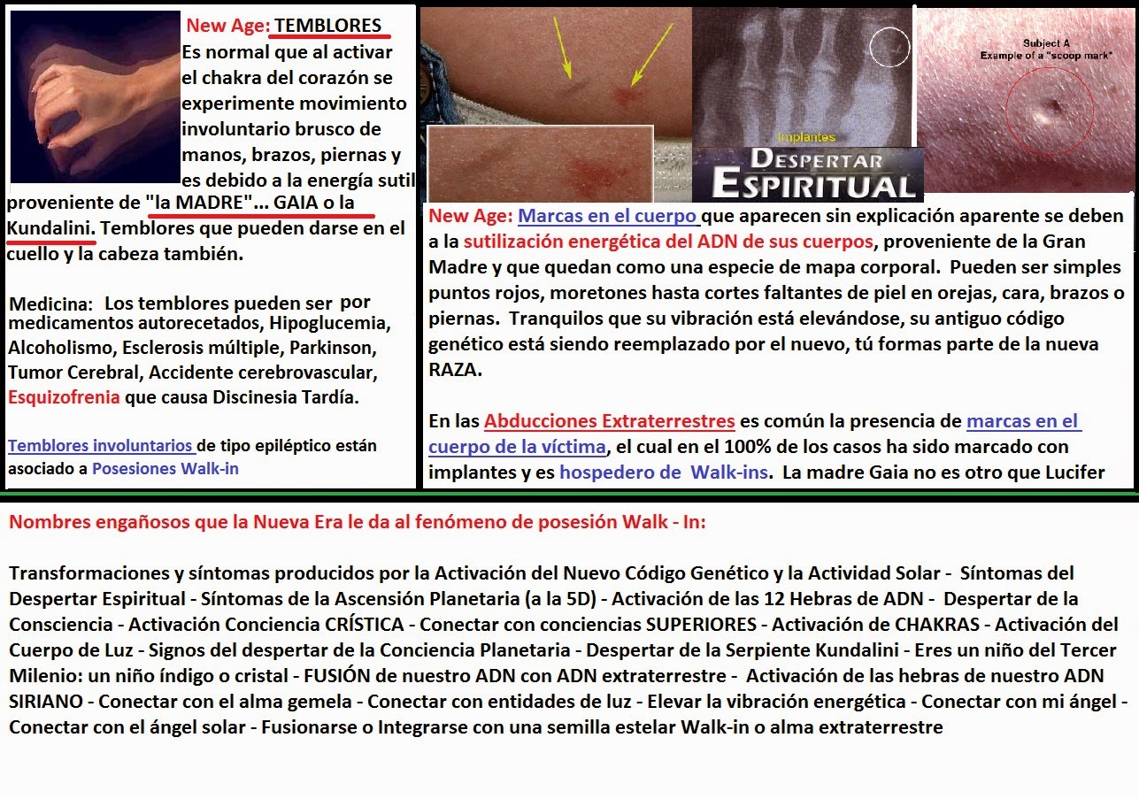 Esta presencia de walk-ins lo pueden corroborar personas con el verdadero don de la clarividencia, ni los new age ni quienes meditan ni quienes activan sus chakras ni los que creen tener el tercer ojo activado, ni los maestros reikistas pueden ver que esto ocurre mientras se abren los portales porque precisamente, estas entidades les BLOQUEAN su clarividencia y les colocan implantes astrales para hacerles ver otra realidad alternativa y sentir los famosos «síntomas de la ascensión planetaria», síntomas que los new age piensan que son muy benéficos y de los cuales se sienten orgullosos de «padecerlos».